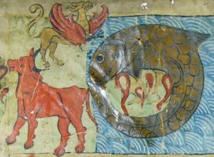 Third, the Talmud describes in detail the forthcoming “Feast of the Leviathan” at the start of the Messianic Age (Bava Batra 75a). The fishy dragon, which is described here as having a terribly “bad odour” reminiscent of the binita, will be consumed by the righteous at the End of Days, in a special sukkah made of its scaly skin. The same meal will include the meat of the great beast, the Behemoth. The Midrash (Vayikra Rabbah 13:3) describes the Behemoth and the Leviathan as two opposing forces engaged in a cosmic duel. The horns of the Behemoth will ultimately impale the Leviathan, just as the fin of the Leviathan tears apart the Behemoth. Both will then be consumed by the righteous. So perhaps the Talmud was symbolically telling us not to mix these opposing forces, the Leviathan and the Behemoth. But there will come a time, in the Messianic Age, when there will be no issue in combining them. Both fish and meat will be served at the same feast. And maybe they will even be eaten together.