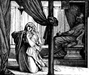 “She opens her mouth with wisdom…” this is Serach bat Asher. She was the granddaughter of Jacob who revealed to him that Joseph was still alive. No one wanted to be the one to break the news to Jacob, fearing he might not be able to handle the news in his old age. So, the graceful Serach was tasked with the job, and she did it so well that Jacob blessed her with everlasting life. According to tradition, she lived for centuries and merited to enter Heaven alive, where she teaches in a Heavenly Yeshiva. (For more, see ‘The Incredible Story of Serach bat Asher’ in Garments of Light.)