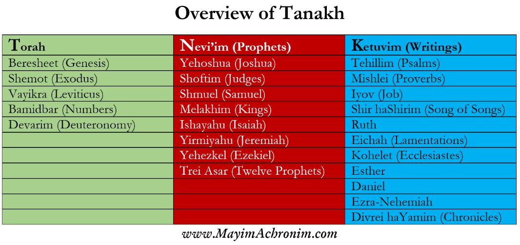 The first of the five books is Beresheet (“Genesis”), recording the history of the world from Creation until the arrival of Ya’akov and his family of seventy in Egypt. The second, Shemot (“Exodus”), describes the bondage in Egypt, the subsequent redemption of the people, the events at Mount Sinai, and the structure of the Mishkan, the mobile sanctuary that God commanded the Israelites to build and carry with them through the Wilderness. The third book, Vayikra (“Leviticus”), is mostly focused on priestly rituals and sacrificial offerings. In the middle of Vayikra is the so-called “Holiness Code” that includes famous adages like “love your fellow as yourself”. The fourth book, Bamidbar (“Numbers”), tells the story of the Israelites during their forty years in the Wilderness. Finally, Devarim (“Deuteronomy”), summarizes and builds on much of what the Torah said previously, and records the final inspiring words of Moses to his people before his passing at the age of 120. The Torah ends with something of a cliffhanger, as the Israelites are at the border ready to enter the Promised Land.