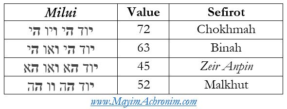 There are four expansions (milui) of God’s Name. The one with a value of 63 (ס״ג) corresponds to Binah.