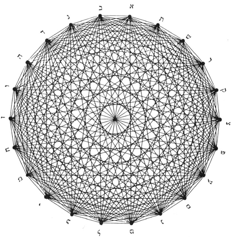 The Wheel of 231 Gates, with lines connecting every combination of letters.