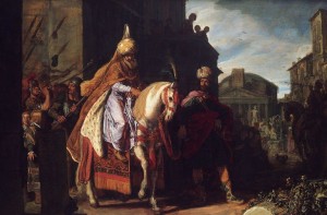 Ahaseurus and Haman at Esther’s Feast, by Rembrandt