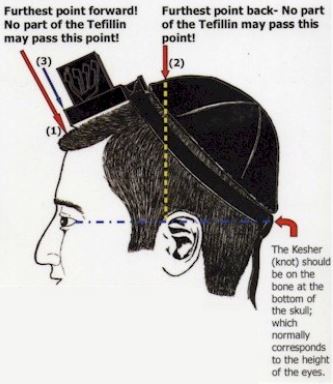 A four-pronged Shin on the head tefillin.