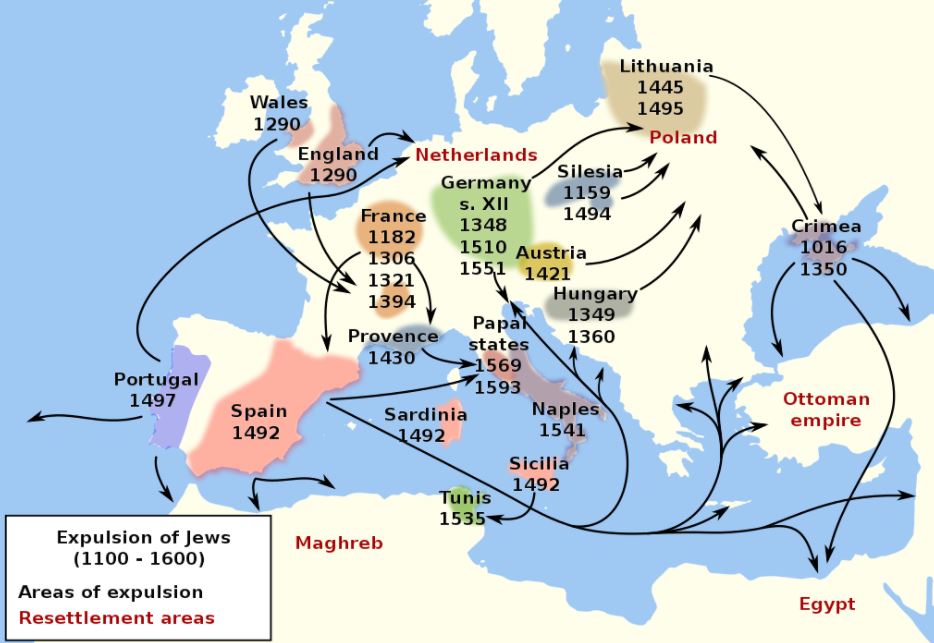 Most of the Sephardic Jews resettled across the Ottoman Empire, in North Africa, Turkey, southeast Europe, and the Middle East. (Fun fact: some Jews became pirates and attacked Spanish ships, both for a little revenge and to reclaim their confiscated wealth!) It is reported that, at the time, Sultan Bayezid II said: “They tell me that Ferdinand of Spain is a wise man, but he is a fool, for he takes his treasure and sends it all to me.” He was right. After the expulsion, Spain had its short bit of glory, and then its power and influence gradually declined. In 1588, their famed armada was wiped out. Soon, they lost all overseas territories and became an afterthought in European history.