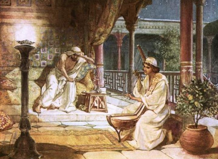 Now the spirit of God had departed from Saul, and an evil spirit sent by God terrified him. And Saul’s servants said to him: “Behold, an evil spirit from God terrifies you. Let our lord now command your servants that are before you, to seek out a man who is a skillful player on the harp; and it shall be, when the evil spirit from God comes upon you, he shall play with his hand, and you shall be well.” (I Samuel 16:14-16)